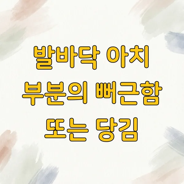 족저근막은 발의 아치를 유지하는 데 핵심적인 역할을 하므로, 염증이 생기면 발바닥 아치 부분을 따라 뻐근하거나 당기는 느낌이 들 수 있습니다. 이는 족저근막 자체의 긴장이나 염증으로 인해 발생하는 증상입니다.